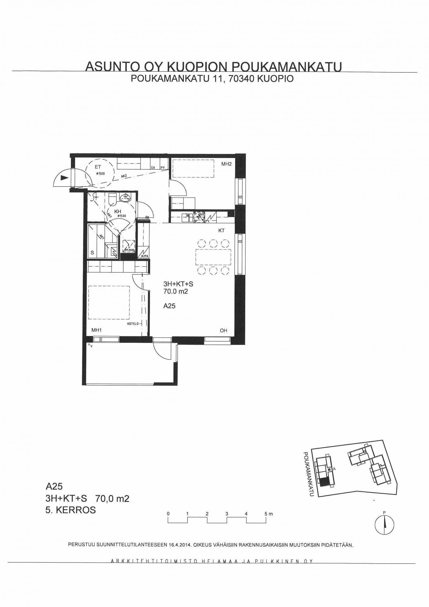 Huoneistoala yhteensä:70 m²