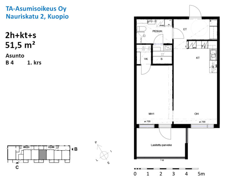 Huoneistoala yhteensä:51.5 m²