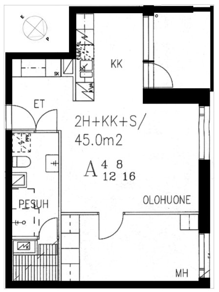 Huoneistoala yhteensä:45 m²