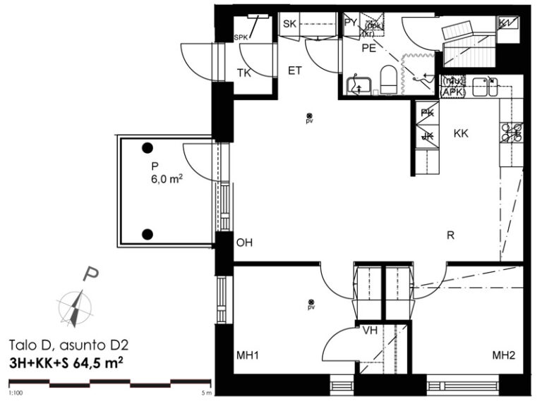 Huoneistoala yhteensä:64.5 m²