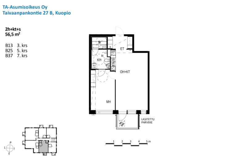 Huoneistoala yhteensä:56.5 m²