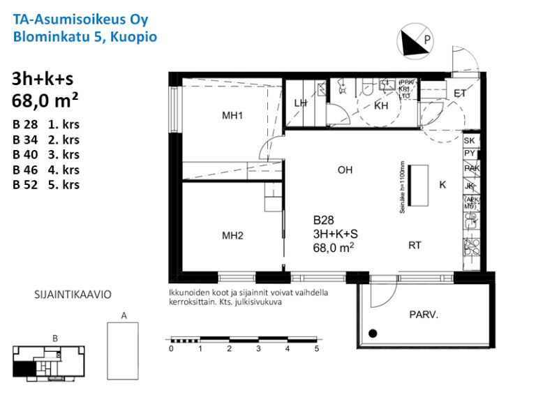 Huoneistoala yhteensä:68 m²