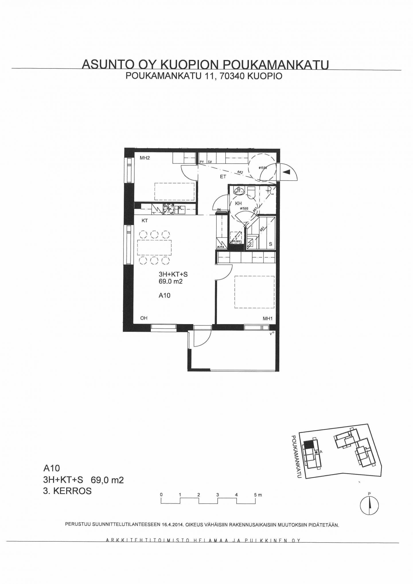 Huoneistoala yhteensä:69 m²